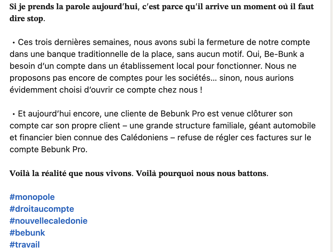 La question est donc plus large que le seul cas de Be-Bunk. Elle renvoie à un problème de fond : en Nouvelle-Calédonie, les réseaux familiaux, bancaires et institutionnels façonnent depuis longtemps le paysage économique. Être à la fois issu de cet univers et son critique principal crée une ambiguïté forte. Est-ce un acte de courage ? Une stratégie de repositionnement ? Ou simplement le reflet d’un système tellement verrouillé qu’il finit par étouffer même ceux qui en sont proches ?