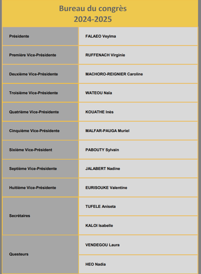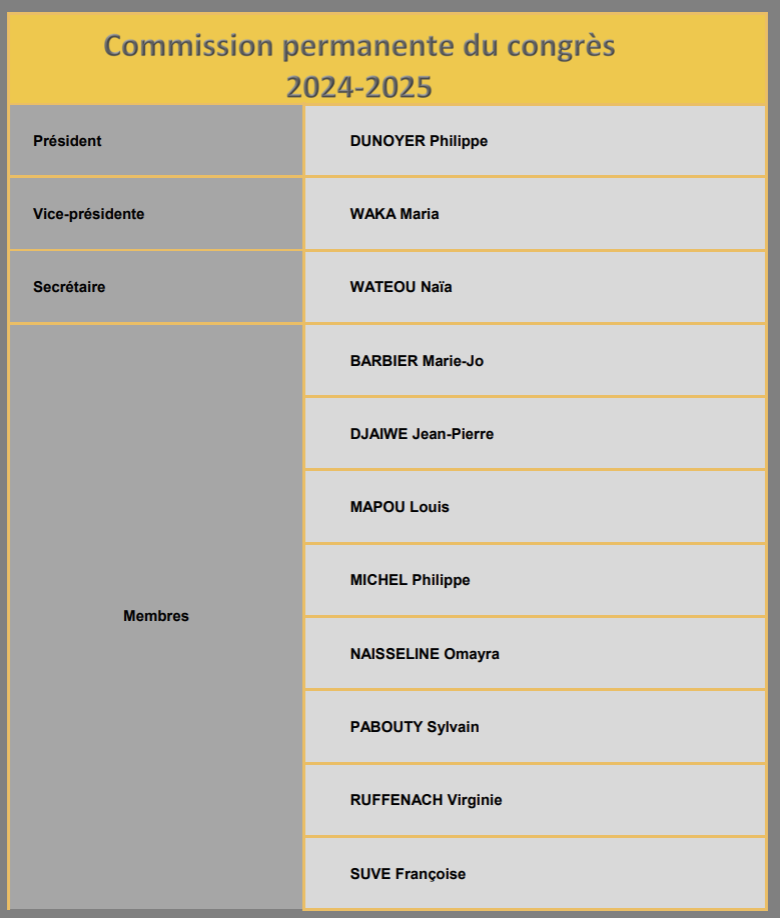 COMPOSITION ACTUELLE DES INSTANCES DU CONGRÈS 2024-2025 :