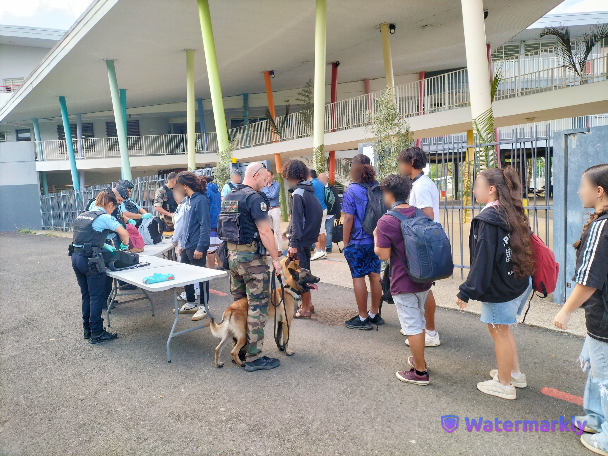 La mission s’est tenue en matinée, dans un périmètre balisé : accès, abords immédiats, espaces collectifs. Les sacs ont été vérifiés sous supervision éducative, pendant qu’une équipe cynophile procédait aux passages techniques. La consigne : rigueur, discrétion, fluidité de la circulation des élèves. Le climat est resté maîtrisé, sans incident notoire. La procédure interne a accompagné chaque étape pour garantir la traçabilité.