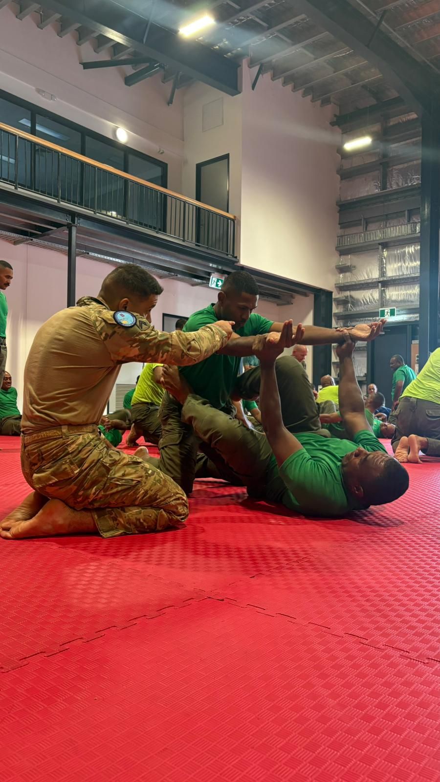 Le détachement d’instruction provenait du Régiment d’infanterie de marine du Pacifique Nouvelle-Calédonie (RIMaP-NC), fer de lance de la présence militaire française dans la région. En coordination avec le coopérant français basé au camp Blackrock, les formateurs calédoniens ont dispensé un enseignement complet mêlant techniques de combat rapproché, maîtrise de la force, gestion du stress en opération et travail en équipe sous contrainte.