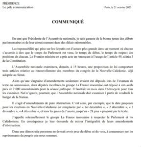 Communiqué de la Présidente - Mardi 21 octobre 2025