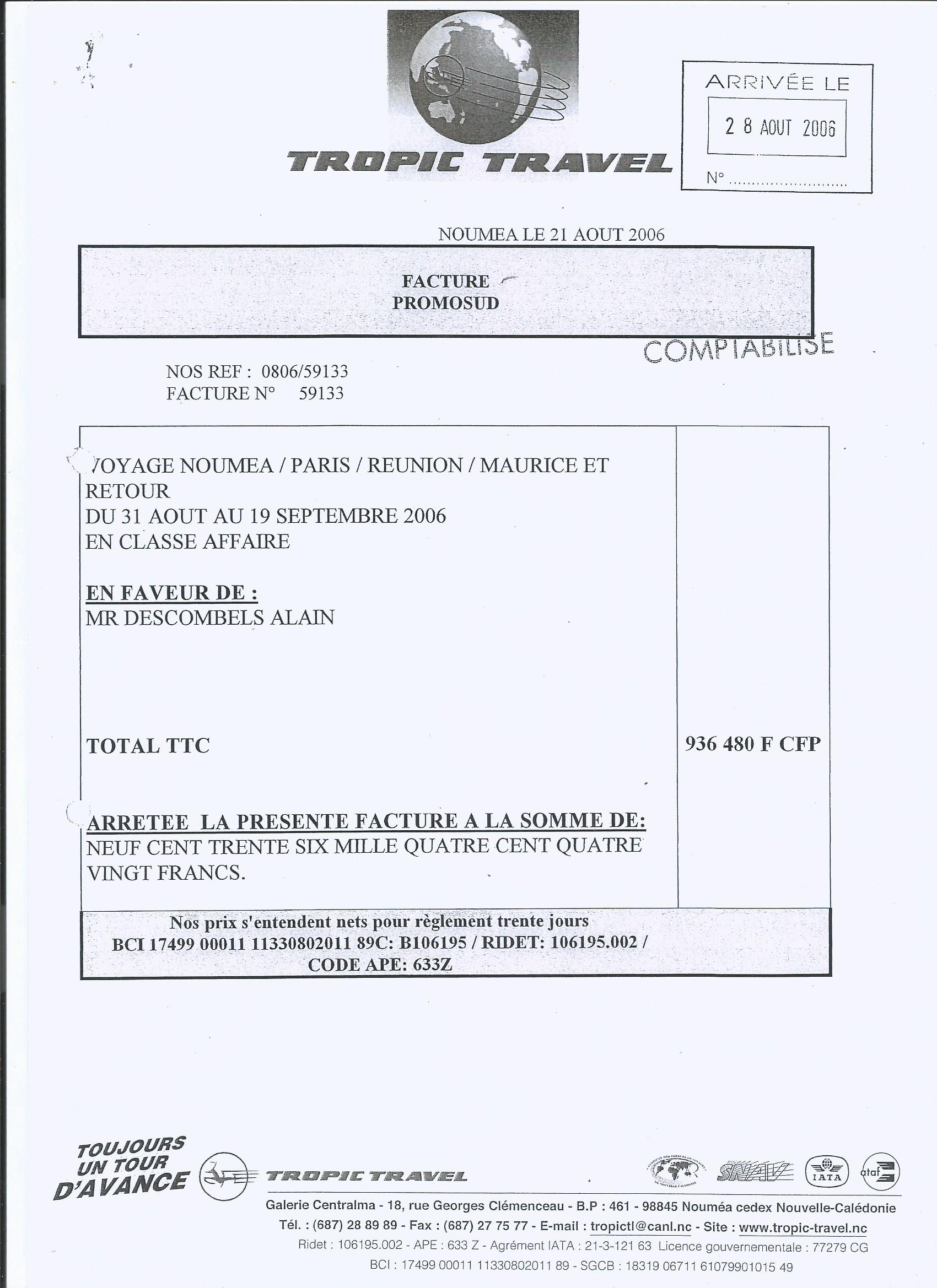 Les faits, eux, ne coulent pas. Et les factures non plus : vols d’hélicoptère pour week-ends privés avec son épouse, séjours en suite à l’Intercontinental Paris à 420 000 francs la nuit, voyages “professionnels” à l’île Maurice, en Suisse, en Australie, tous réglés par la collectivité. Sans oublier ce courrier demandant à la BCI de virer des fonds publics de Promosud vers son propre compte personnel.