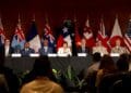 Le ministre australien de la Défense, Richard Marles, a évoqué une « croissante compétition géostratégique » et insisté sur les valeurs démocratiques partagées entre les membres et les observateurs : Royaume-Uni, Japon et États-Unis.