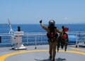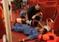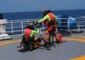 Dès l’alerte donnée, la DSCGR a activé son centre opérationnel de gestion de crise (COG 988) et déclenché le plan “nombreuses victimes”, véritable colonne vertébrale du dispositif de secours terrestre. Pendant que le navire “prenait feu”, huit sapeurs-pompiers spécialisés dans la lutte contre les feux embarqués ont été héliportés par un Puma des Forces armées de Nouvelle-Calédonie (FANC) directement sur le bâtiment.