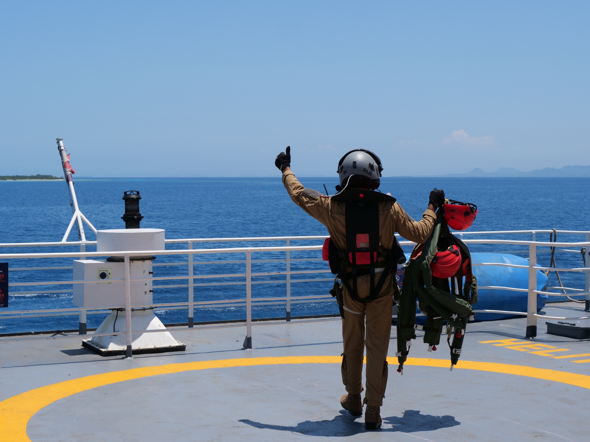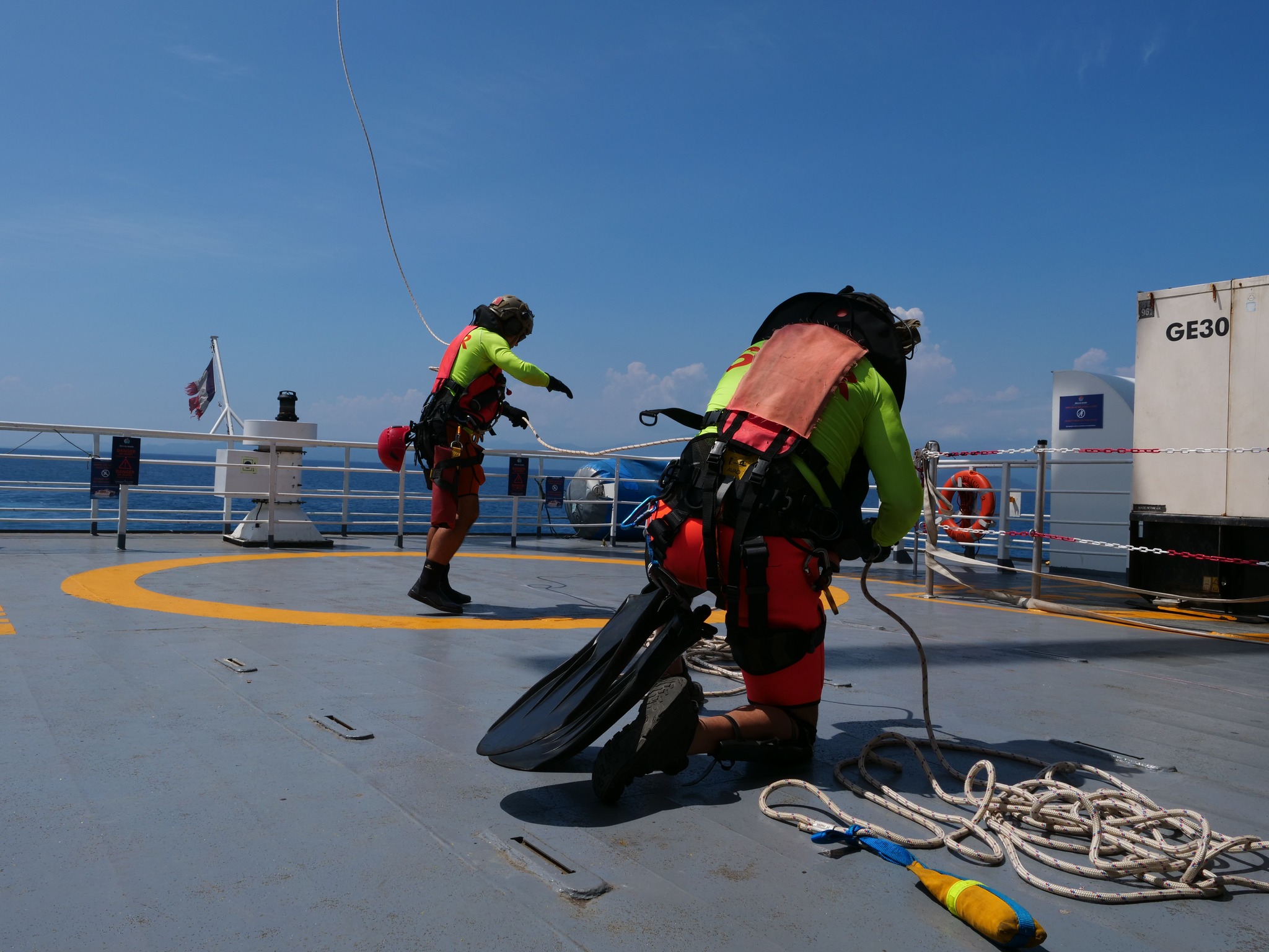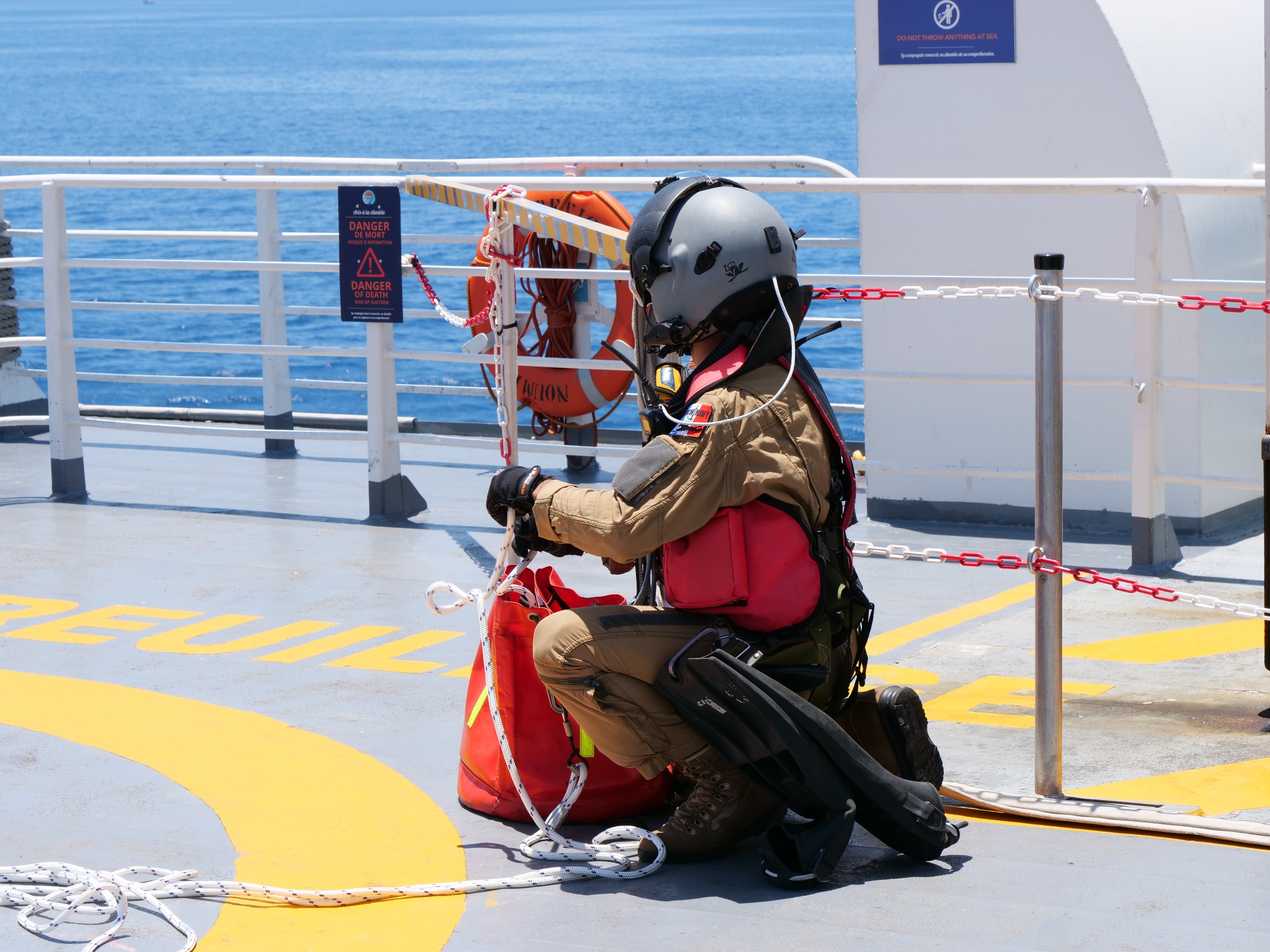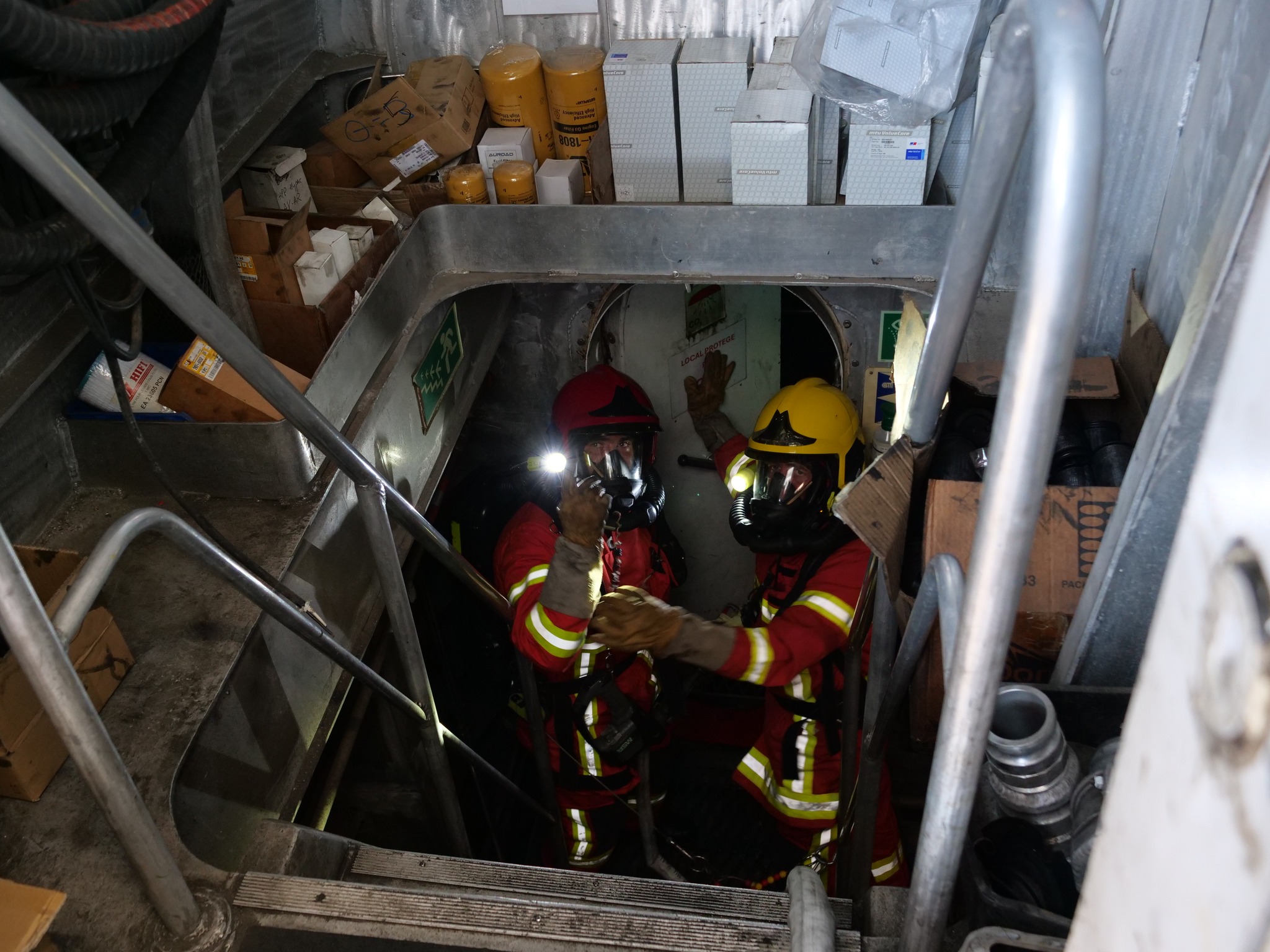 Dès l’alerte donnée, la DSCGR a activé son centre opérationnel de gestion de crise (COG 988) et déclenché le plan “nombreuses victimes”, véritable colonne vertébrale du dispositif de secours terrestre. Pendant que le navire “prenait feu”, huit sapeurs-pompiers spécialisés dans la lutte contre les feux embarqués ont été héliportés par un Puma des Forces armées de Nouvelle-Calédonie (FANC) directement sur le bâtiment.