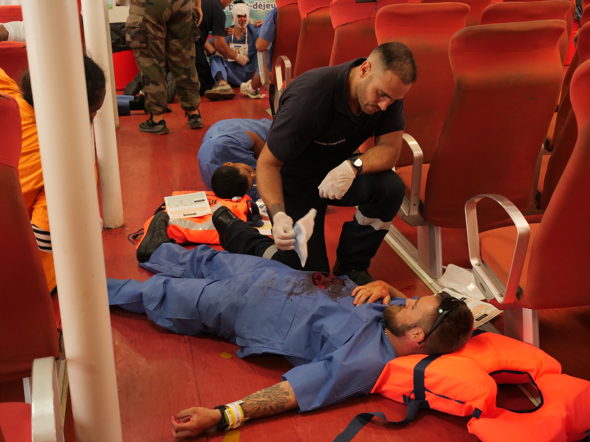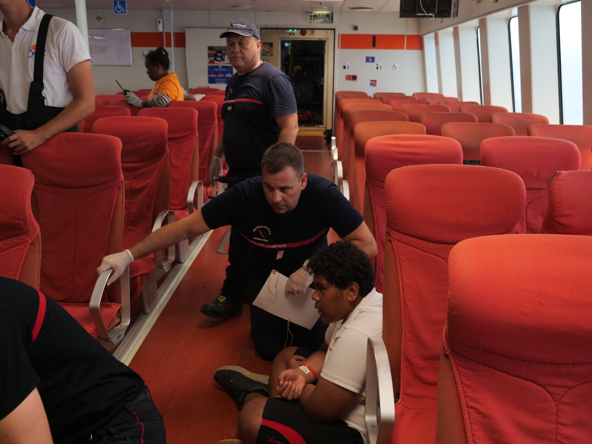 Les “passagers” et “victimes” du Betico 2 n’étaient autres que des élèves de la classe de défense du collège Champagnat, des militaires de la base navale Chaleix et des jeunes engagés du RSMA. Tous ont prêté main-forte pour rendre l’exercice crédible et immersif.