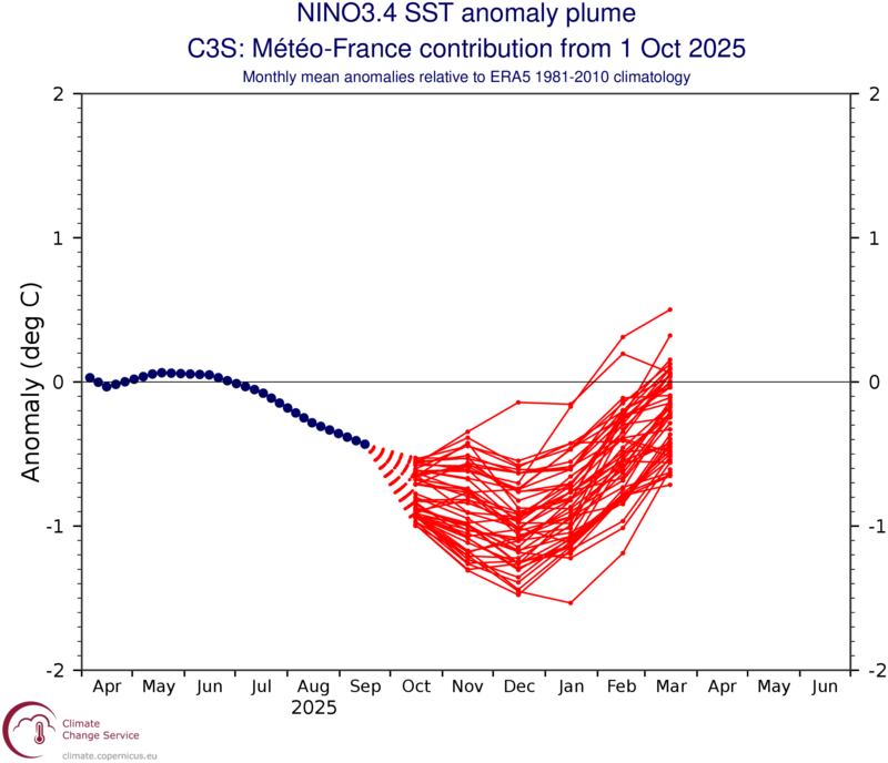 Puis, dès août 2025, un  refroidissement a commencé, amorçant une dynamique qui attire l’attention des prévisionnistes : le Pacifique se dirige vers un épisode La Niña, certes bref, mais suffisamment marqué pour nécessiter un suivi rapproché.
