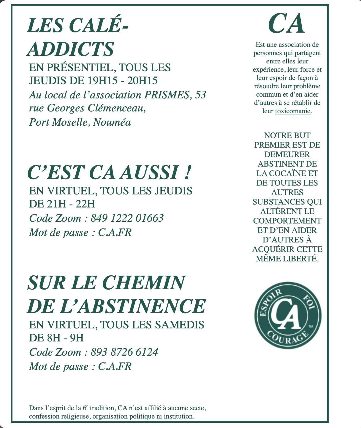 Franck : Oui, plusieurs fois. J’ai appelé le CHS, contacté deux psychologues. Mais ici, en Nouvelle-Calédonie, il n’y a aucune structure spécialisée dans le sevrage de la cocaïne. Les dispositifs sont pensés pour l’alcool, le cannabis, ou le kava.