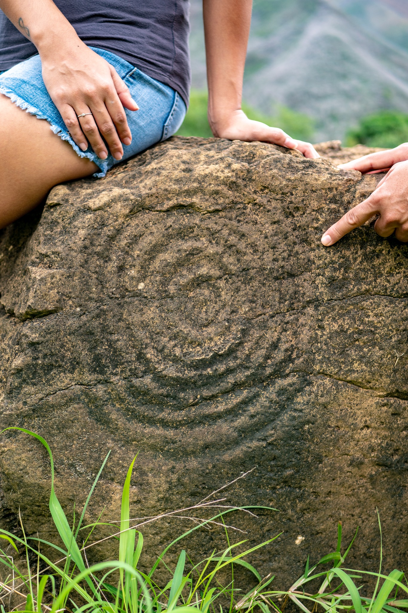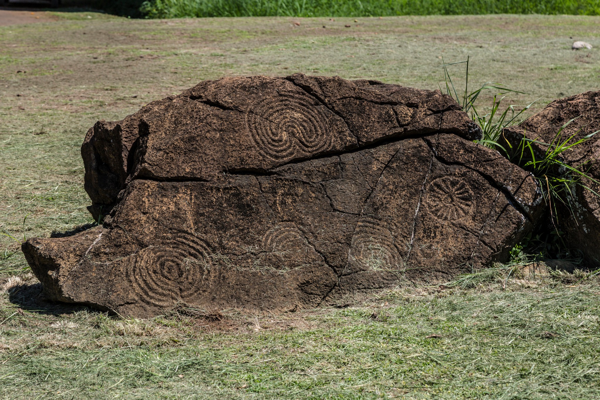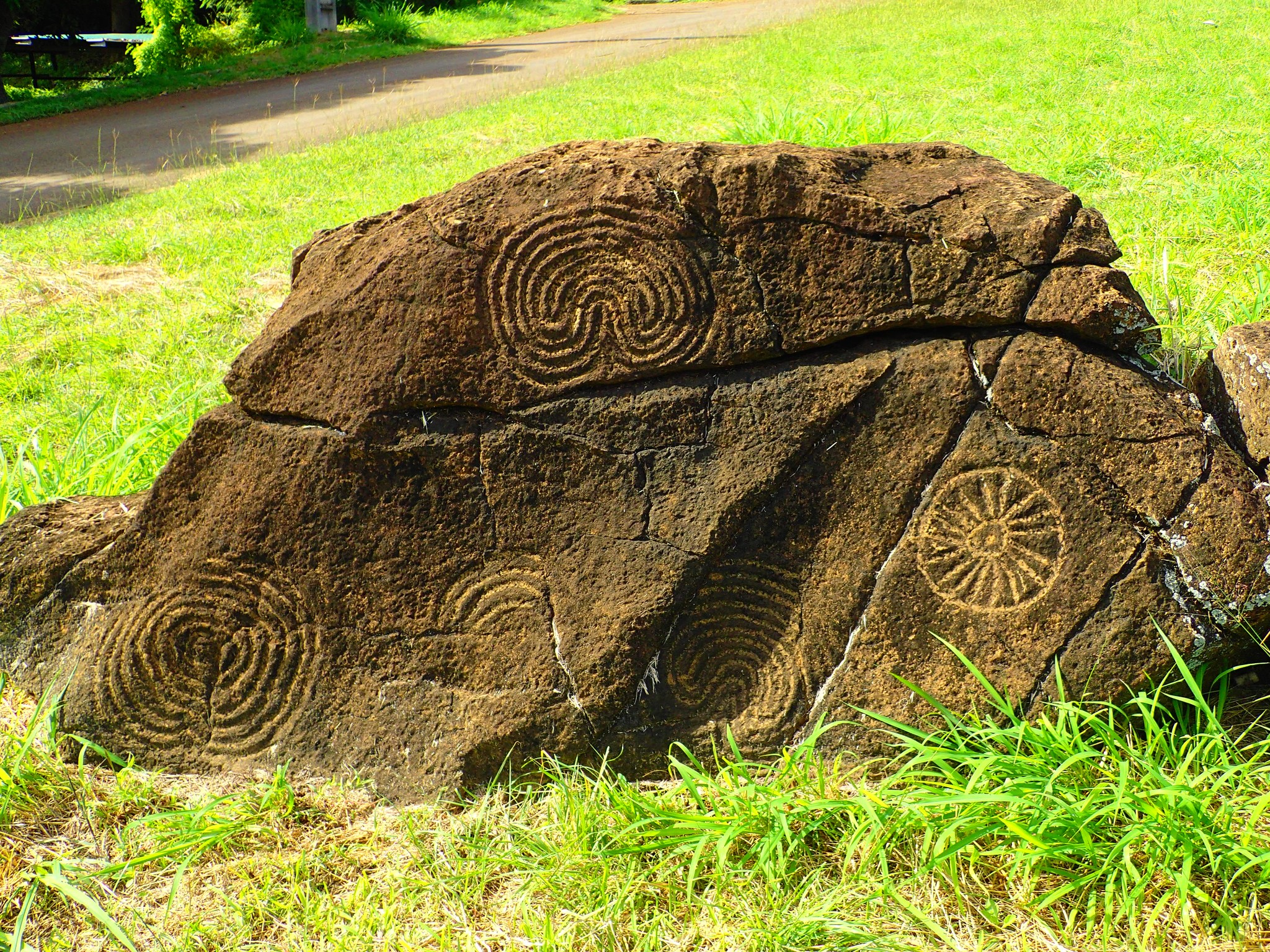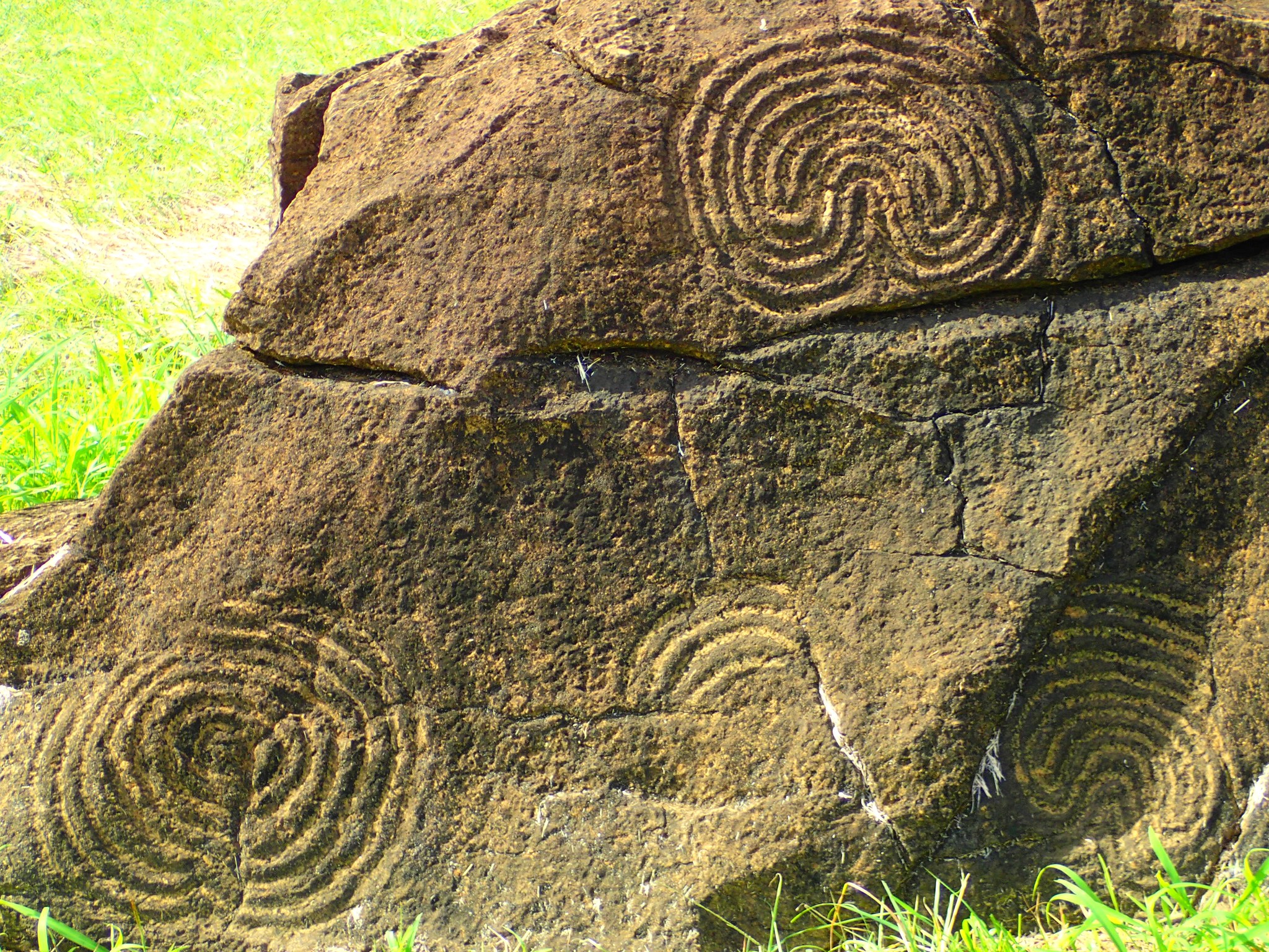 Les motifs retrouvés en Nouvelle-Calédonie forment un ensemble d’une richesse exceptionnelle : plus de 370 sites recensés et environ 6 000 gravures. Les spirales sont les plus nombreuses, suivies des cercles concentriques et des fameuses croix enveloppées, également connues sur les poteries Lapita vieilles de 3 000 ans.