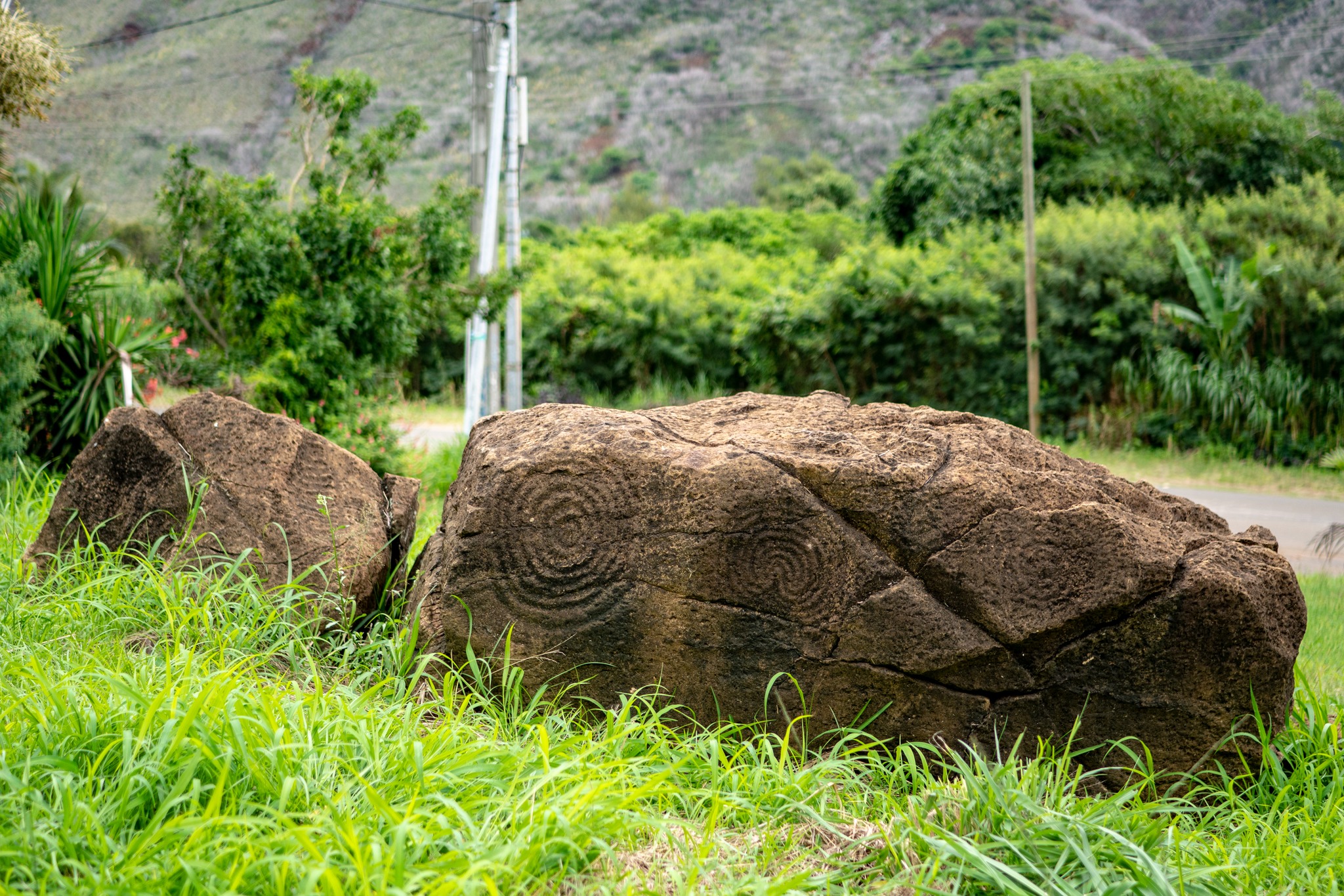 À Thio, les gravures sont visibles à ciel ouvert, au bord de la route menant au village. Rien d’artificiel, rien de reconstruit. Juste la terre, la pierre et la mémoire intacte. Ces motifs ne sont pas de simples dessins : ils prolongent un héritage remontant au peuplement initial de l’archipel, autour de 1050 av. J.-C., et qui se serait maintenu jusqu’aux années 1930.