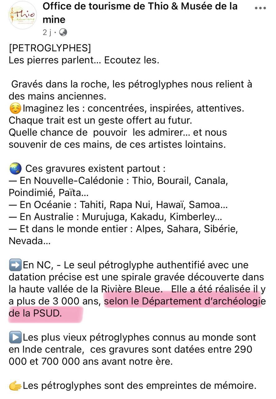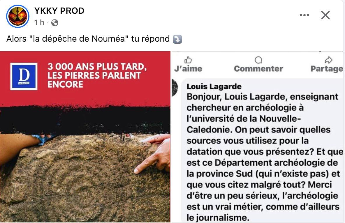 Mais à peine l’article publié, voilà que la page YKKY PROD s’empresse de relayer un commentaire moqueur signé Louis Lagarde, chercheur en archéologie. Il interroge : « Quelles sources utilisez-vous ? », « Quel département archéologique de la province Sud ? », sous-entendant une erreur ou une invention. la réponse en image provenant de l’Office de tourisme de Thio & Musée de la mine.