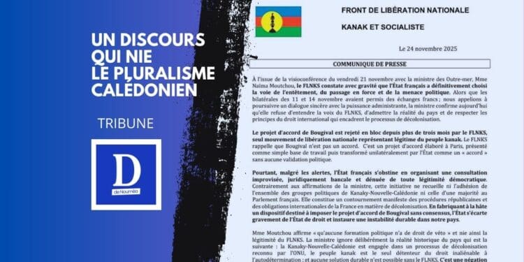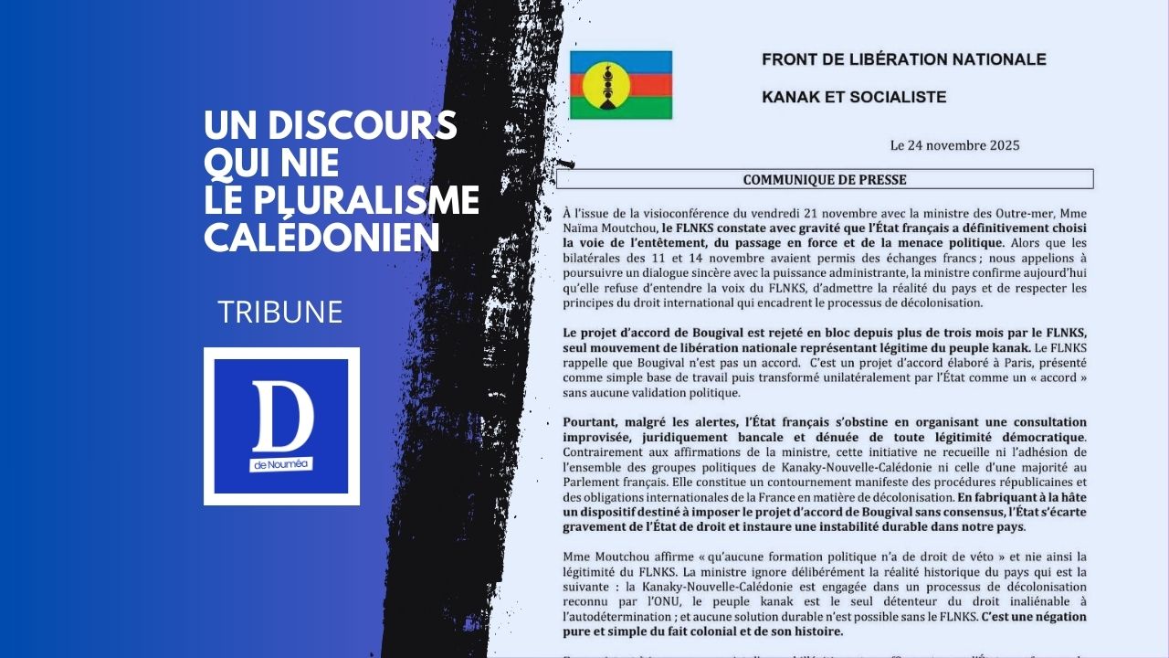 Le communiqué accuse l’État de vouloir imposer un accord « sans consensus », mais c’est bien le FLNKS qui refuse d’entrer dans la phase de discussion institutionnelle.