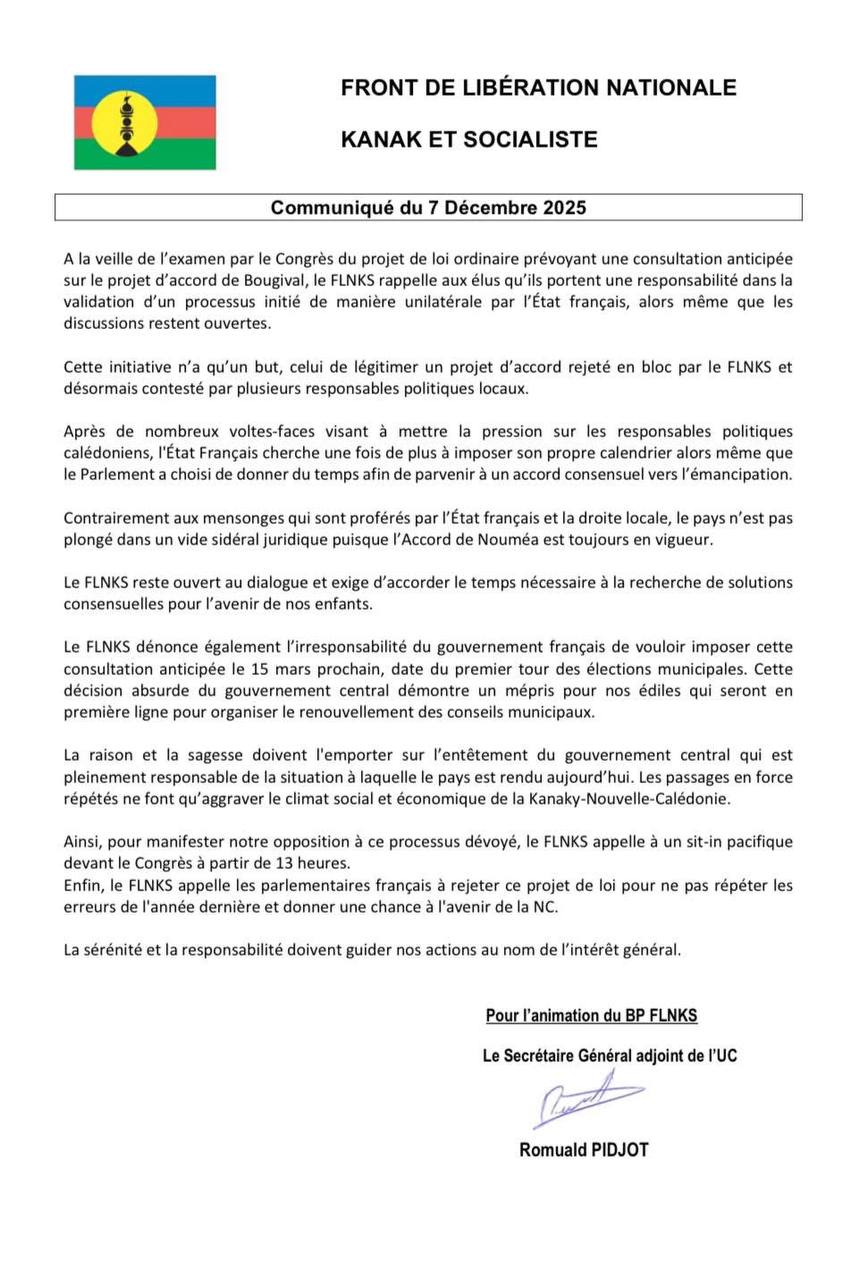 Le FLNKS reproche à Paris de vouloir “légitimer un accord rejeté en bloc”, alors que ce sont précisément les semaines de refus, d’absences aux réunions et de coups de pression qui ont poussé l’État à avancer. Le pays n’est pas “dans un vide juridique”, contrairement à ce qu’affirme le communiqué : il est dans un vide politique, créé par ceux qui, durant des mois, ont déserté la table et bloqué toute avancée.