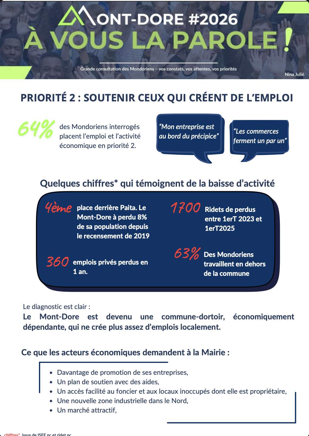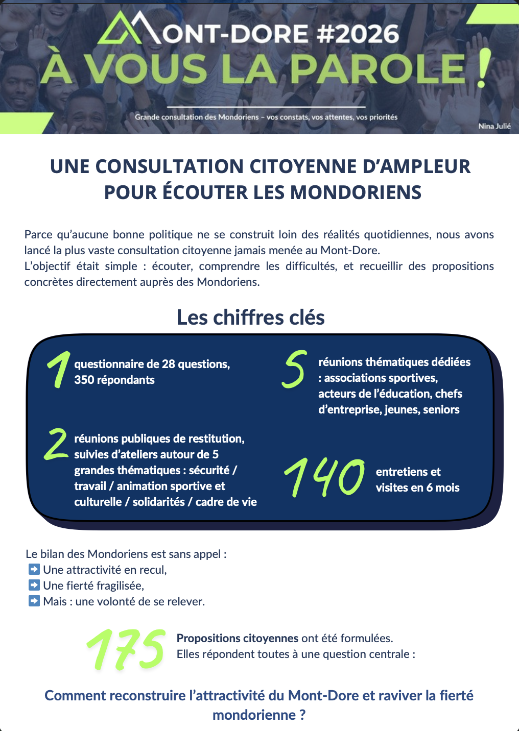 Tags: attractivité communaleconsultation citoyenne Mont-Doreéconomie locale Mont-Doreélections municipales Nouvelle-CalédonieMont-Dore 2026Nina Juliésécurité Mont-Dore