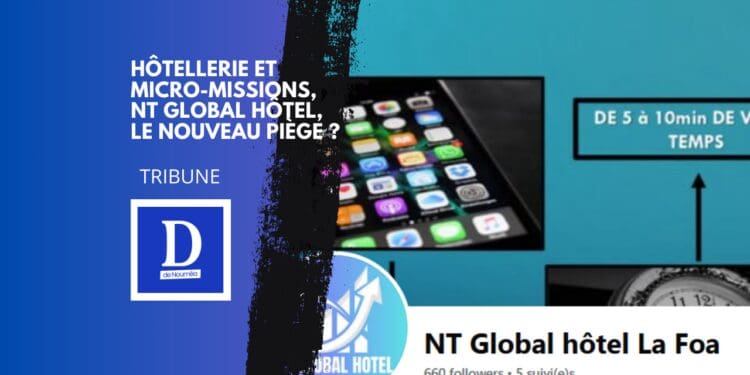 En octobre 2025, une page Facebook émerge à La Foa, portée par NT Global Hôtel. Pas de levée de fonds publique, pas de paiement à l’inscription, mais un récit qui glisse vite vers un modèle déjà bien connu des autorités de consommation : l’arnaque à la tâche.