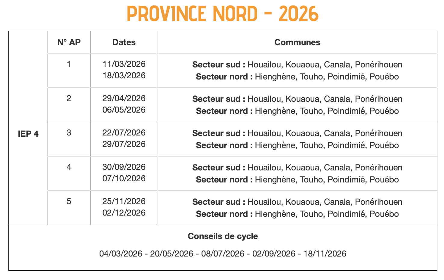 Les cinq autres demi-journées pédagogiques sont dédiées aux animations pédagogiques. Elles correspondent à des temps de formation professionnelle, directement liés aux priorités éducatives fixées par le gouvernement de la Nouvelle-Calédonie et aux besoins spécifiques des circonscriptions.