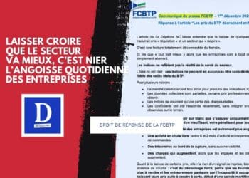 La FCBTP a tenu à exercer un droit de réponse après la publication, de notre article évoquant...