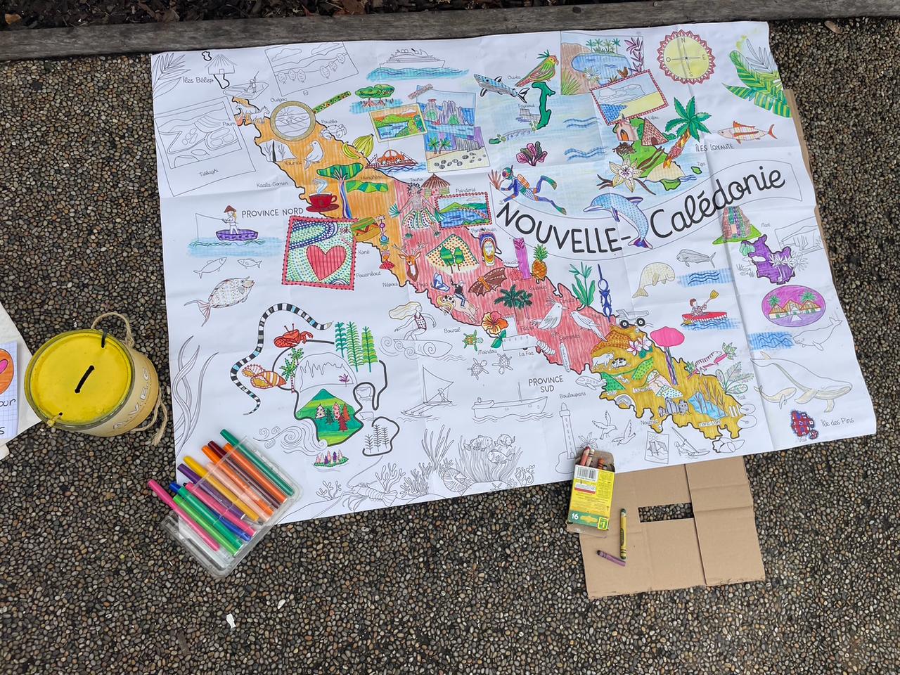 explique sa présidente, Marie-Claude Hellouin, lucide mais déterminée. Une cagnotte, mais aussi un moyen pour chaque Calédonienne et chaque Calédonien de remercier cette association, en inscrivant ou dessinant, sur des fresques mises à disposition à l'entrée de grandes surfaces — comme c’est le cas au Leader Price de Magenta — un petit mot ou un dessin. Des fresques de dessins d’enfants exprimant avec une force désarmante la gratitude et la solidarité envers les malades évacués : un message simple, sincère, qui résume à lui seul le combat de l’AVEC depuis plus de quarante ans.
