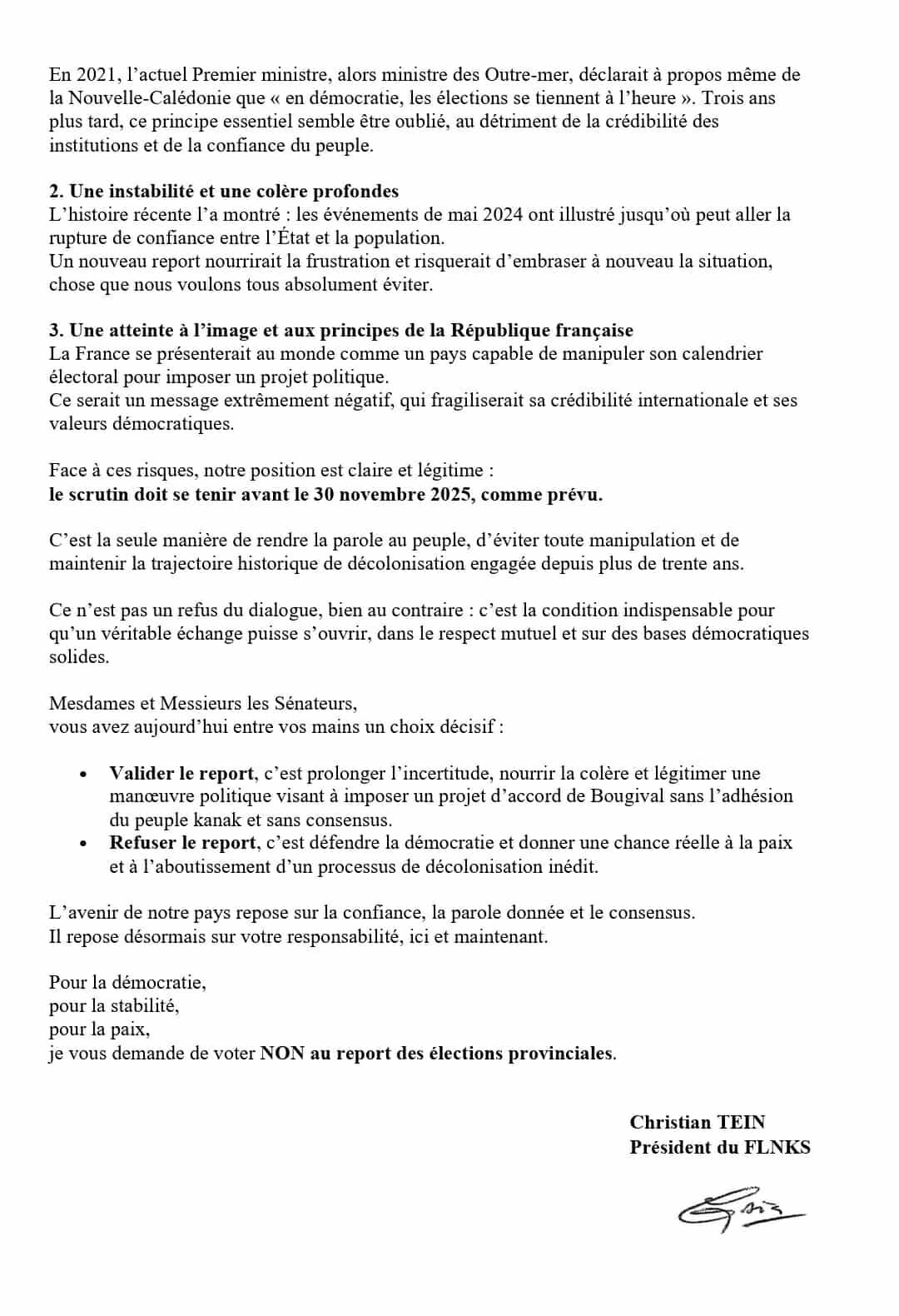 Christian Téin a dénoncé vigoureusement le projet de report des élections provinciales, présenté comme un « passage en force ». Mais l’argument vacille : le FLNKS avait accepté deux reports des élections provinciales, au nom du dialogue. Pourquoi ce qui était légitime hier deviendrait-il aujourd’hui un déni de démocratie ?