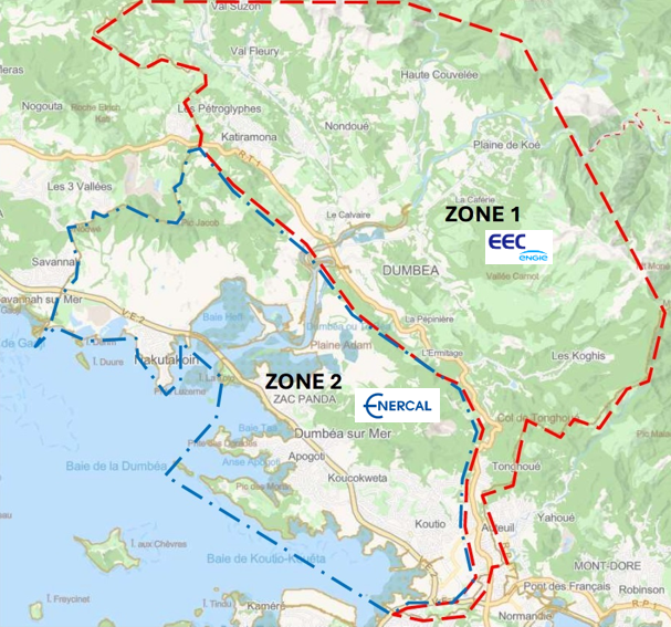 Les secteurs inclus dans cette zone sont précisés : Rivière-Salée, Entre-Deux-Mers, Auteuil, Tonghoué, Les Koghis déjà clients EEC, mais aussi tous les nouveaux quartiers concernés par le transfert.
